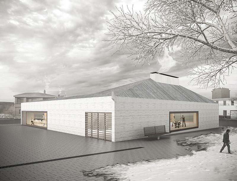La intervención pretende crear un edificio que optimice su relación con el espacio exterior que le rodea, poniendo en valor ese espacio urbano que supone la plaza Moreno Navarrete, y que la convierta en referencia no solo para los habitantes de Noviercas, sino para cualquiera que atraviese la localidad por la calle La Marta. En definitiva, nuestro primer objetivo es que tanto el edificio con el tratamiento que se propone para el espacio exterior asociado a él, se conviertan en hitos representativos acordes a su carácter de espacio público, todo ello sin renunciar a la contemporaneidad. Por otra parte, queremos proponer un edificio versátil, que pueda amoldarse con flexibilidad a las diversas actividades que un edificio de este tipo suele albergar; desde pequeños eventos culturales a todo tipo de reuniones. Así mismo y no menos importante, pretendemos que el nuevo edificio sea un ejemplo de las mejores prestaciones de confort, funcionalidad y economía, y que pueda ser construido con solvencia y garantía gracias a un sistema constructivo asequible y de fácil ejecución.