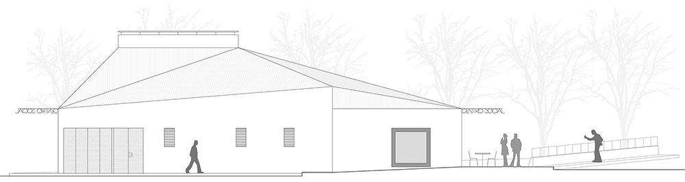 Nos encontramos con un edificio pre-existente destinado a Centro Social que en la actualidad no satisface las necesidades del municipio. El nuevo programa de necesidades reclamado, un bar-cafetería, una sala polivalente y los servicios asociados, implica una completa redistribución interior. Al mismo tiempo, su estado de conservación es deficiente y actualizar sus sistemas constructivos y sus instalaciones supondría la práctica renovación de los elementos materiales del edificio en cuestión por lo que se decide demoler el edificio existente y proponer uno ex novo. Por último, cabe destacar el espacio urbano donde el edificio se encuentra. El edificio se enclava en una pequeña área peatonal aislada, anexa a la arteria principal de la localidad y en conexión con la calle Mayor y a través de ella, con los hitos urbanos de la misma. El edificio por tanto ocupa una posición privilegiada para ver y ser visto.