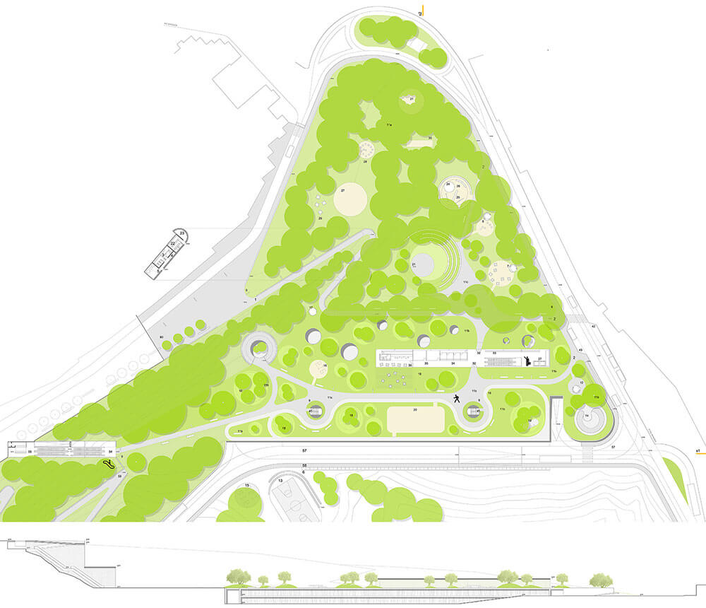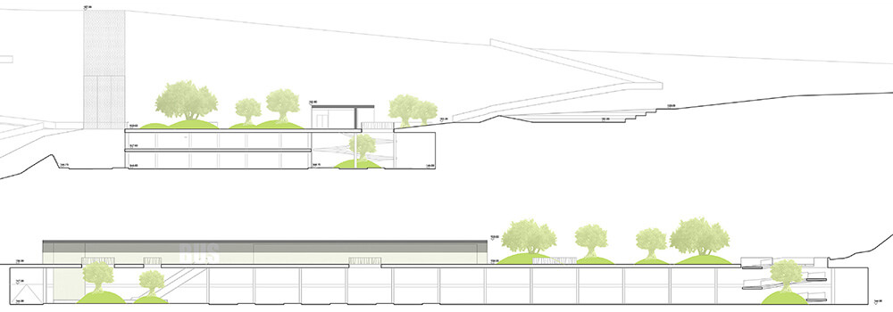 En tercer lugar decidimos que la cubierta de este volumen bajo rasante sea una cubierta vegetal que permita restablecer la continuidad de la masa vegetal existente y aporte nuevas zonas verdes destinadas a acoger los usos del parque equipado solicitado.