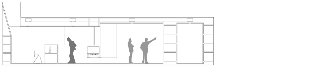 Se ha hecho especial hincapié en poder revelar y apreciar la sección del espacio y en consecuencia su organización, y ello es posible gracias al espacio distribuidor que media entre los espacios de visita y atención al público y los de biblioteca y servicios, es en este espacio donde realmente el espectador toma conciencia de la organización de la sede, al tiempo que “descubre” como pasar de un ámbito a otro, lo cual por otra parte aporta una cierta tensión lúdica que enriquece, a nuestro juicio, la intervención.