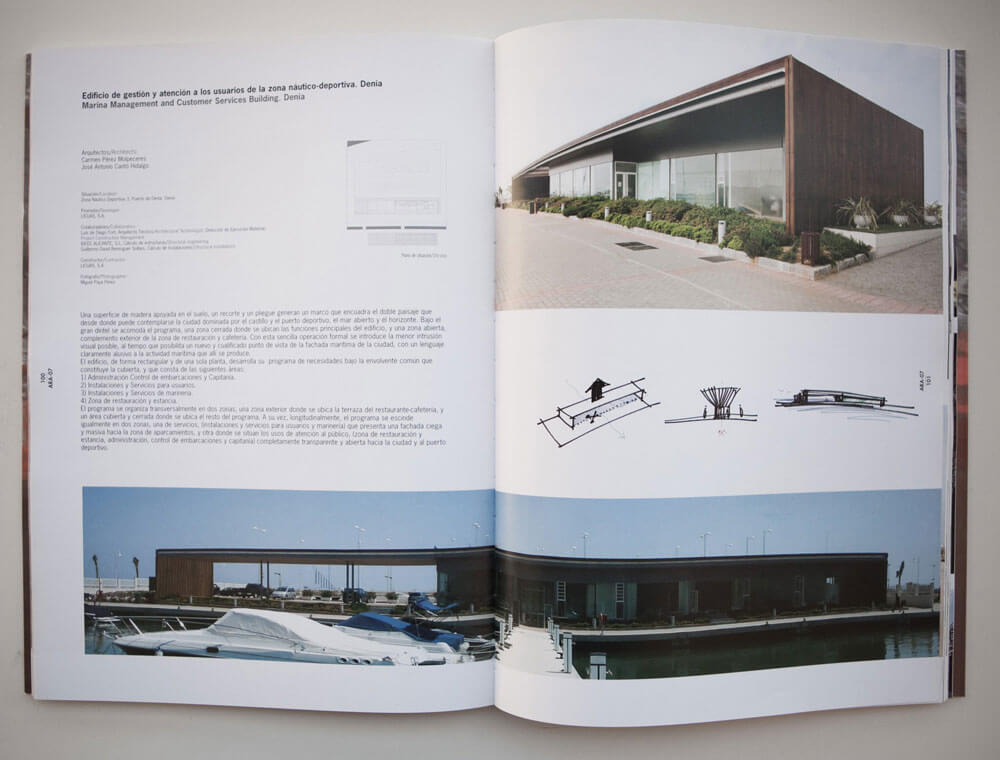 El número de la revista ViA Arquitectura dedicado a la Arquitectura Reciente de Alicante en el 2007 (ARA.07) publica el edificio de servicio para la gestión y atención a los usuarios de la zona naútico-deportiva 3 del Puerto de Denia.